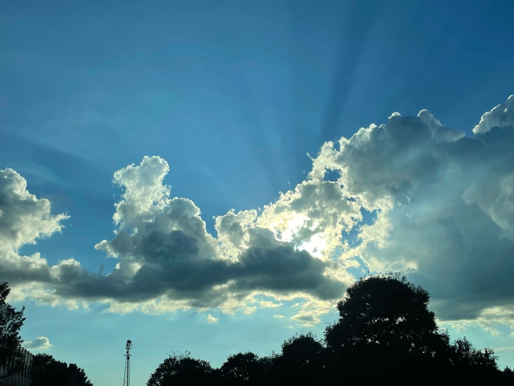The moment I took this beautiful picture of the sunbeams bursting through the darkened sky, I was headed into the funeral home.