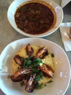 The shrimp and grits, called Shrimp Charleston, are absolutely scrumptious! The shrimp are seasoned and cooked just right with just a little bit of a kick. The grits are so creamy and delicious. These are some of my favorite!