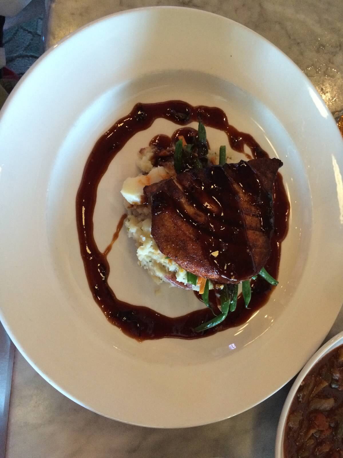 The Northshore Salad, full of feta, cranberries and candied pecans on a bed of spinach is delicious. The fried green tomatoes are just as incredible. I don’t even like tomatoes, but these little items are a tasty delight, AND they are set upon a bed of those creamy, scrumptious grits. I’m not a huge fan of balsamic vinagrette; however, this mixture of grits, fried green tomatoes, feta and vinagrette is like a party in your mouth! Yum!